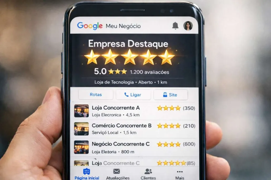O Google utiliza as avaliações como sinal de confiança e relevância local. Isso influencia diretamente: